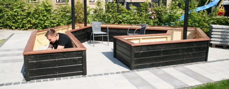 Garden High eller bare Højbede på Dansk? Igen en idé med multifunktion fra Plysen Design. Formen er utraditionel så udseendet og anvendelsen går op i en ”højere” enhed. Bedet er fremstillet i ubehandlet grantræ for at sikre at det ikke afgiver diverse giftstoffer ligesom fra trykimprægneret træ. Udvendigt er træbeklædningen sortbejset og afsluttet i top med en mahogni terrassebrædder.