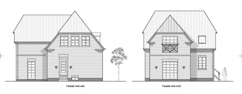 Arkitektfirmaet Plysen Design har i denne sag udarbejdet et skitseforslag, hvorpå hovedhuset er tilbageført til den oprindelig stil fra 1926 med sprossede vinduer i stedet for eksisterende 70´er ”butiksruder” og delt kviste som understreger symmetrien i den flotte frontfacade.