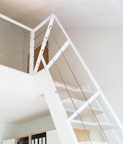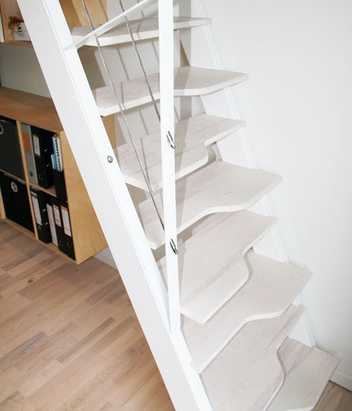 Når pladsen kniber og man vil have noget ordentligt at se- og gå på, må man være kreativ og gør det simpelt og lækkert. Med udgangspunkt i en hems som manglede en trappestige, har Plysen Design udfærdiget denne lette og elegante trappeløsning.
