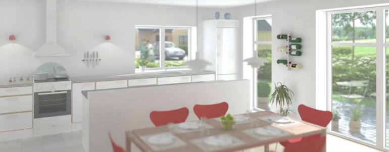 Arkitekten har lagt vægt på at skabe et lyst og venligt byggeri, hvor den enkelte køber kan komme rundt om sit eget hus og stadig respektere lokalplanens intention om sammenbygget bebyggelse med høj rejsning.