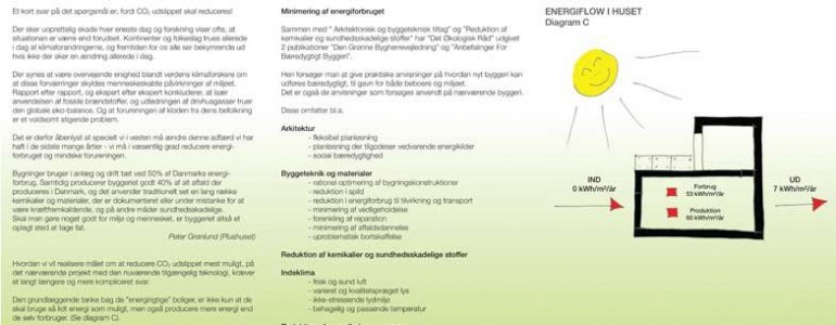 Alle boliger skulle opføres som lavenergihuse, der bl.a. skulle være selvforsynende med el og varm i form af jordvarme og solceller.