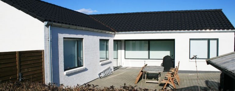 Med udgangspunkt i en 70´er bolig, med saddeltag, trægavle, udhæng og udvendig ”snyderem” (en ca. 10 cm. høj træplade ovenpå facademuren, før udhænget), bliver dette hus total forvandlet.