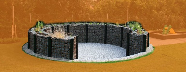Som prikken over i´et, har gabionen en kerne af god sort muld, således at toppen af gabionen er beplantet med diverse krydderurter lige til klippe af og komme på grillen.